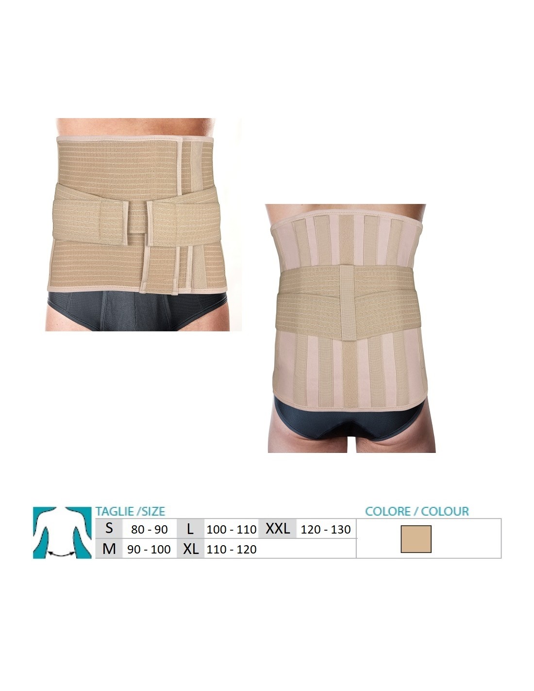 Il Corsetto elastico Orione è coadiuvato da pannello posteriore termosaldato, senza cuciture, con 4 stecche anatomiche.L'apertura/chiusura con doppio pannello permette di calibrare la tensione sul dorso, garantendo un efficace sostegno.Schiena.Fascia per schiena. Cintura per schiena. Fascia lombosacrale. Cintura lombosacrale.