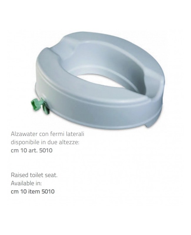 The 10 cm high Orione Homecare toilet seat riser with side locks is suitable for most types of toilets.